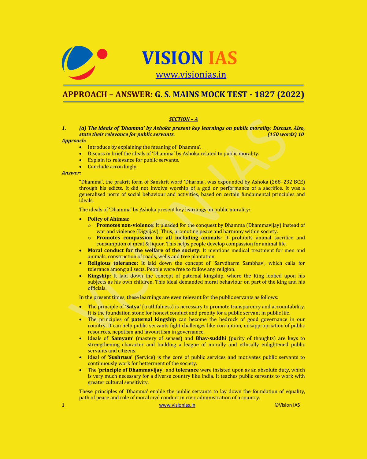 / VISION IAS 2022 APPROACH ANSWER GS MAINS MOCK TEST-1827 (2022) (MODEL ANSWER ) (BLACK & WHITE)