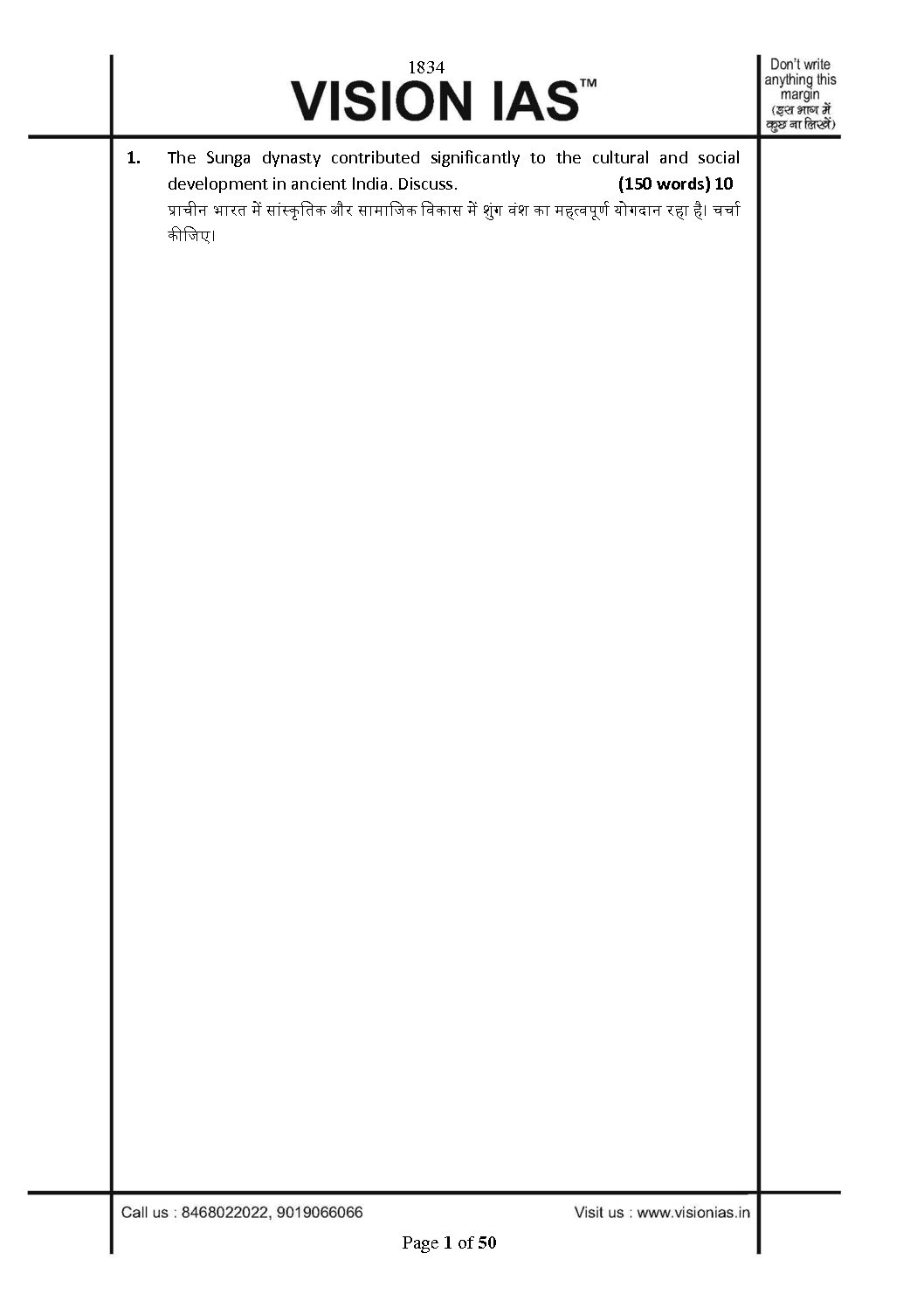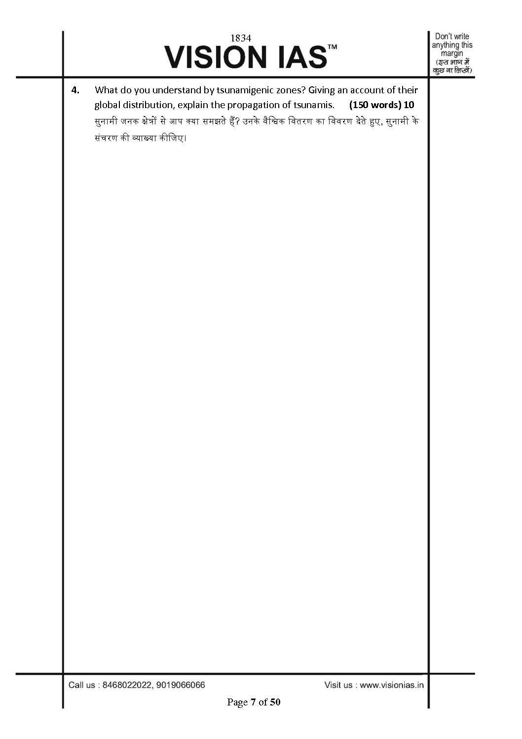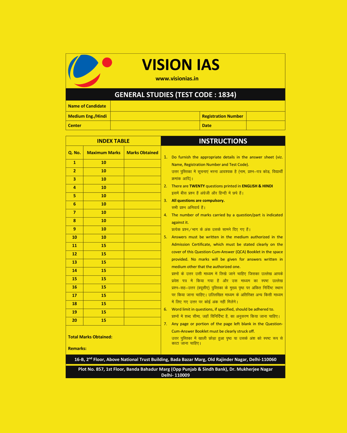 / VISION IAS 2022 QCA GENERAL STUDIES TESTCODE-1834 (QUESTION CUM ANSWER BOOKLET) 2022 (BLACK & WHITE)