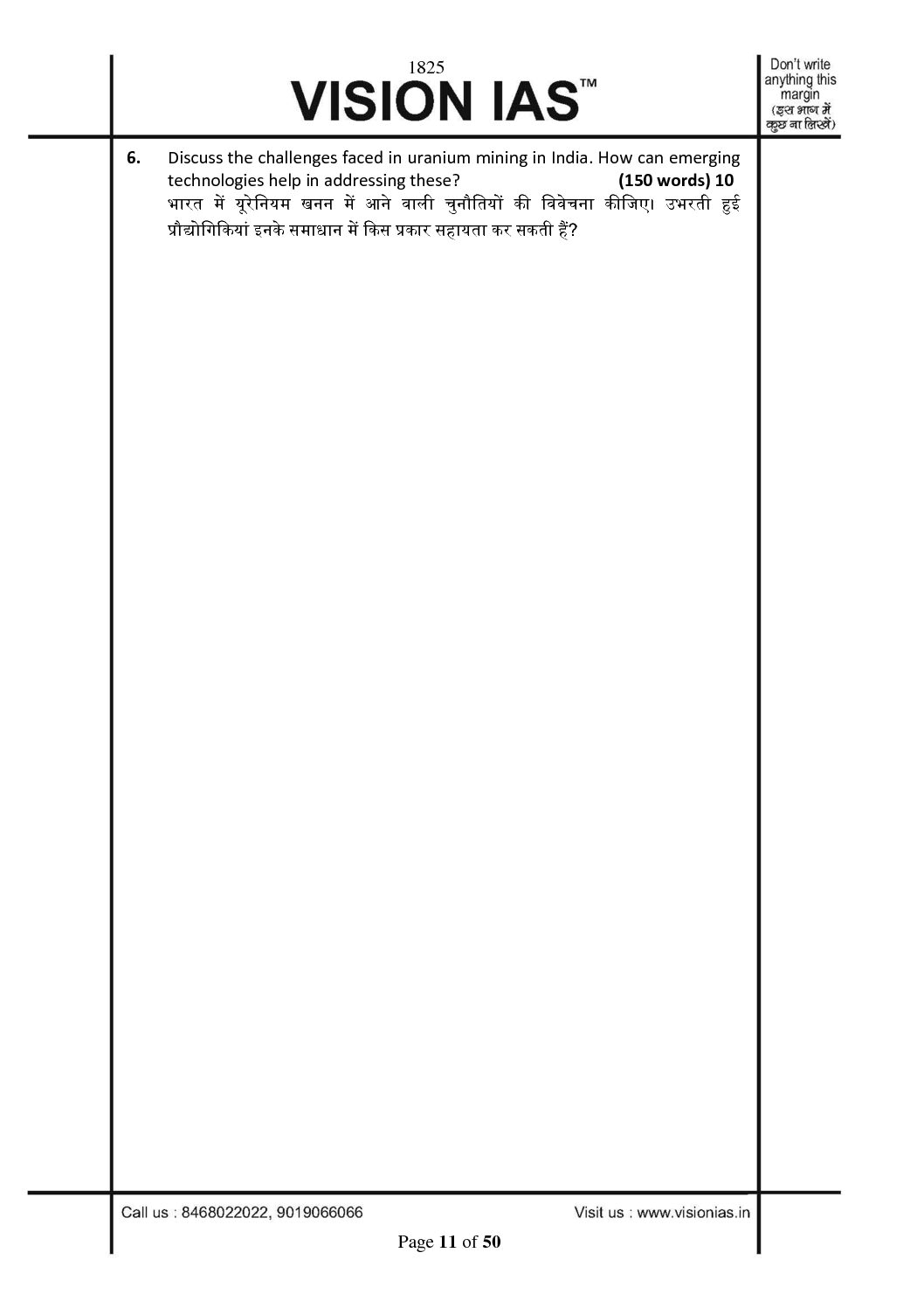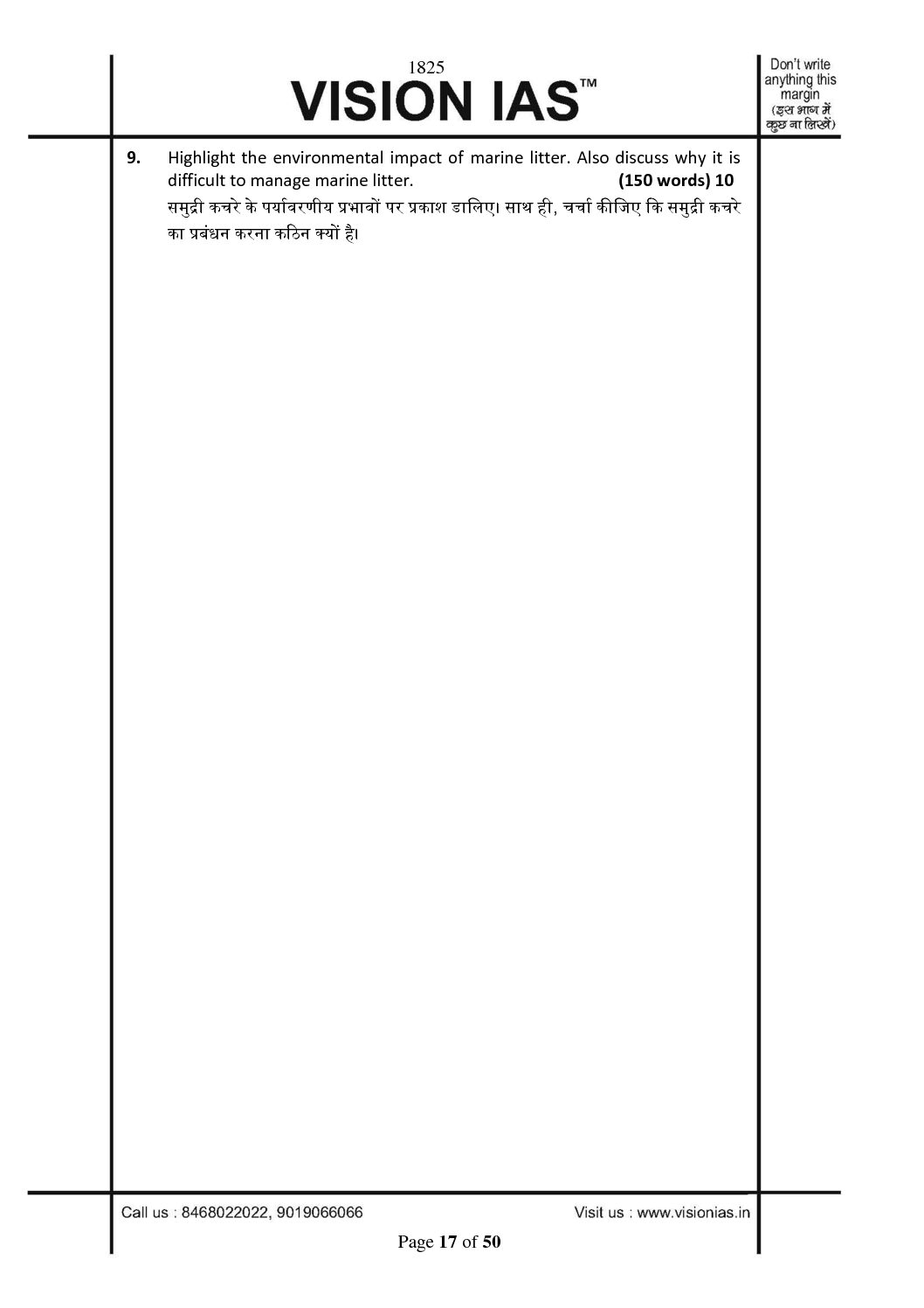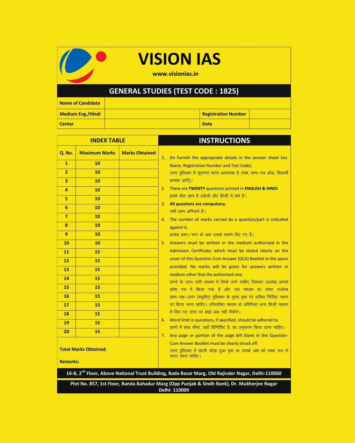 / VISION IAS 2022 QCA GENERAL STUDIES TESTCODE-1825 (QUESTION CUM ANSWER BOOKLET) 2022(BLACK & WHITE)