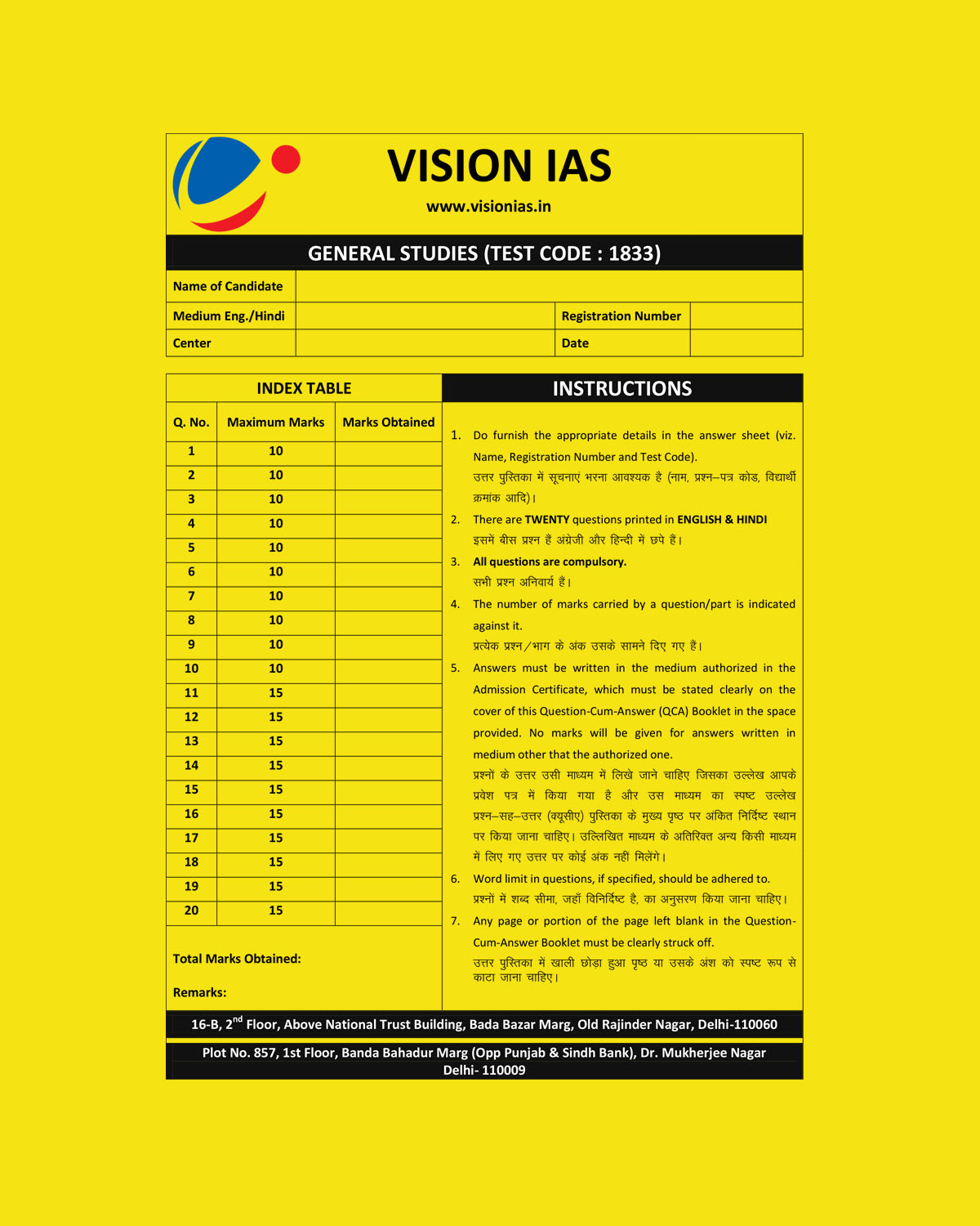 / VISION IAS 2022 QUESTION CUM-ANSWER BOOKLETS TEST CODE-1833 (2022) (BLACK & WHITE)