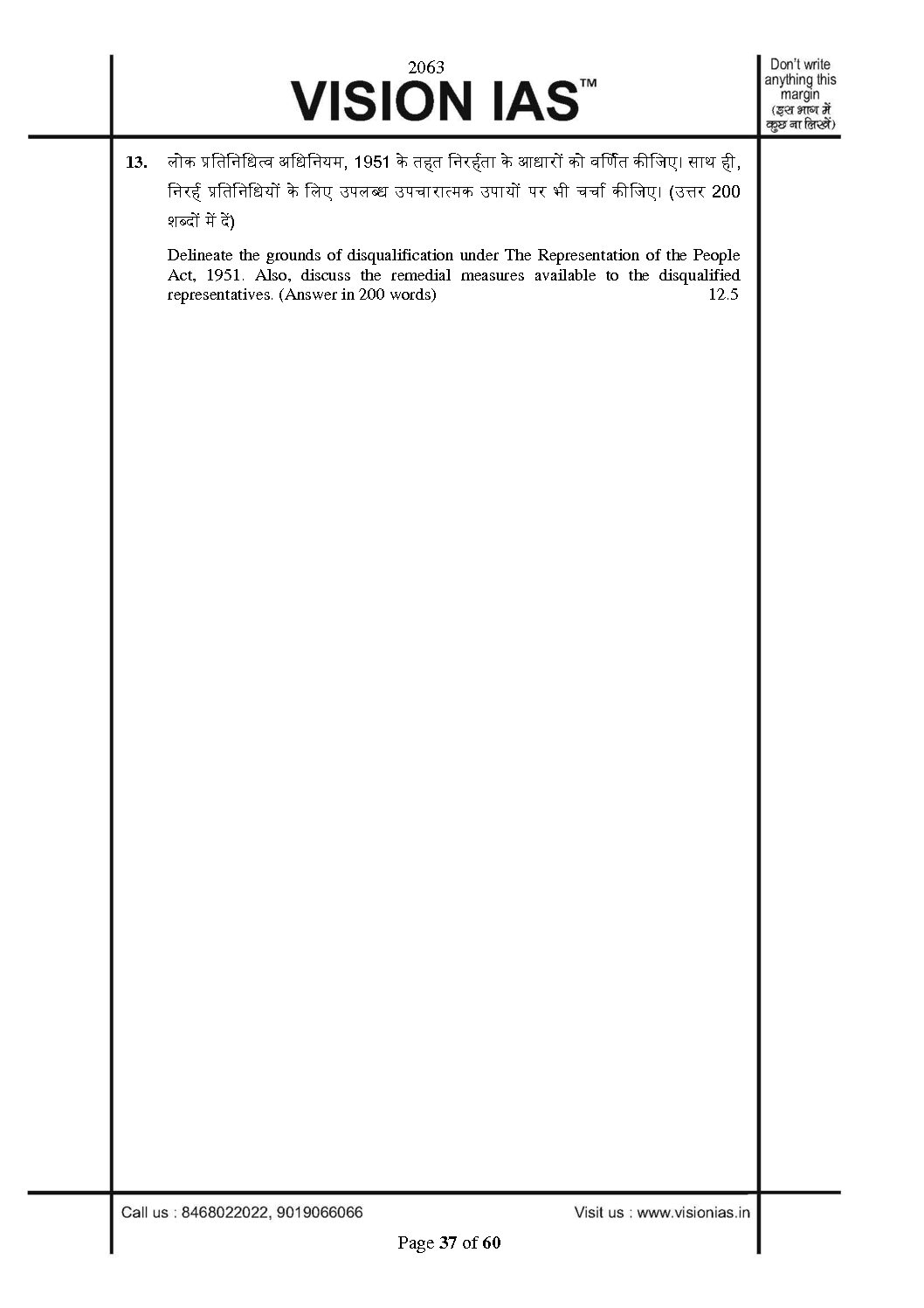 / VISION IAS 2023 TESTCODE-2063 (QUESTION CUM ANSWER BOOKLET) 2023 (BLACK & WHITE)