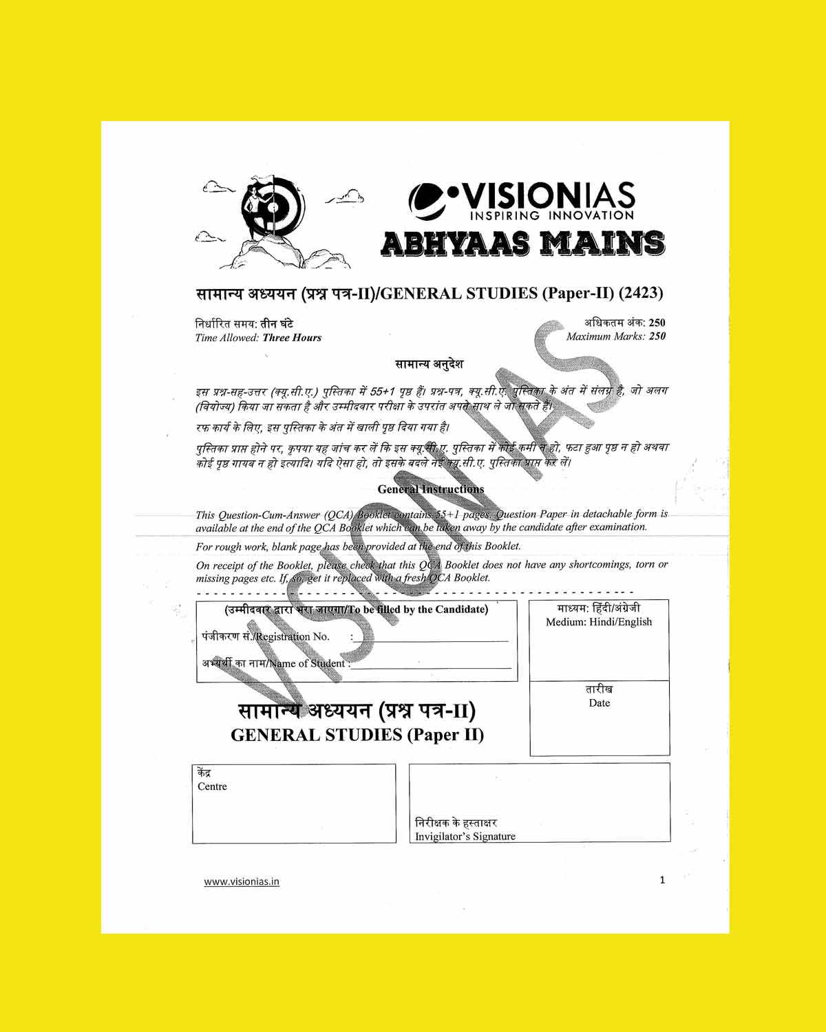 / VISION IAS 2023 ABHYAAS QUESTION CUM ANSWER BOOKLETS TEST-02 (2423) 2023 ANSWER BOOKLET (BLACK & WHITE)