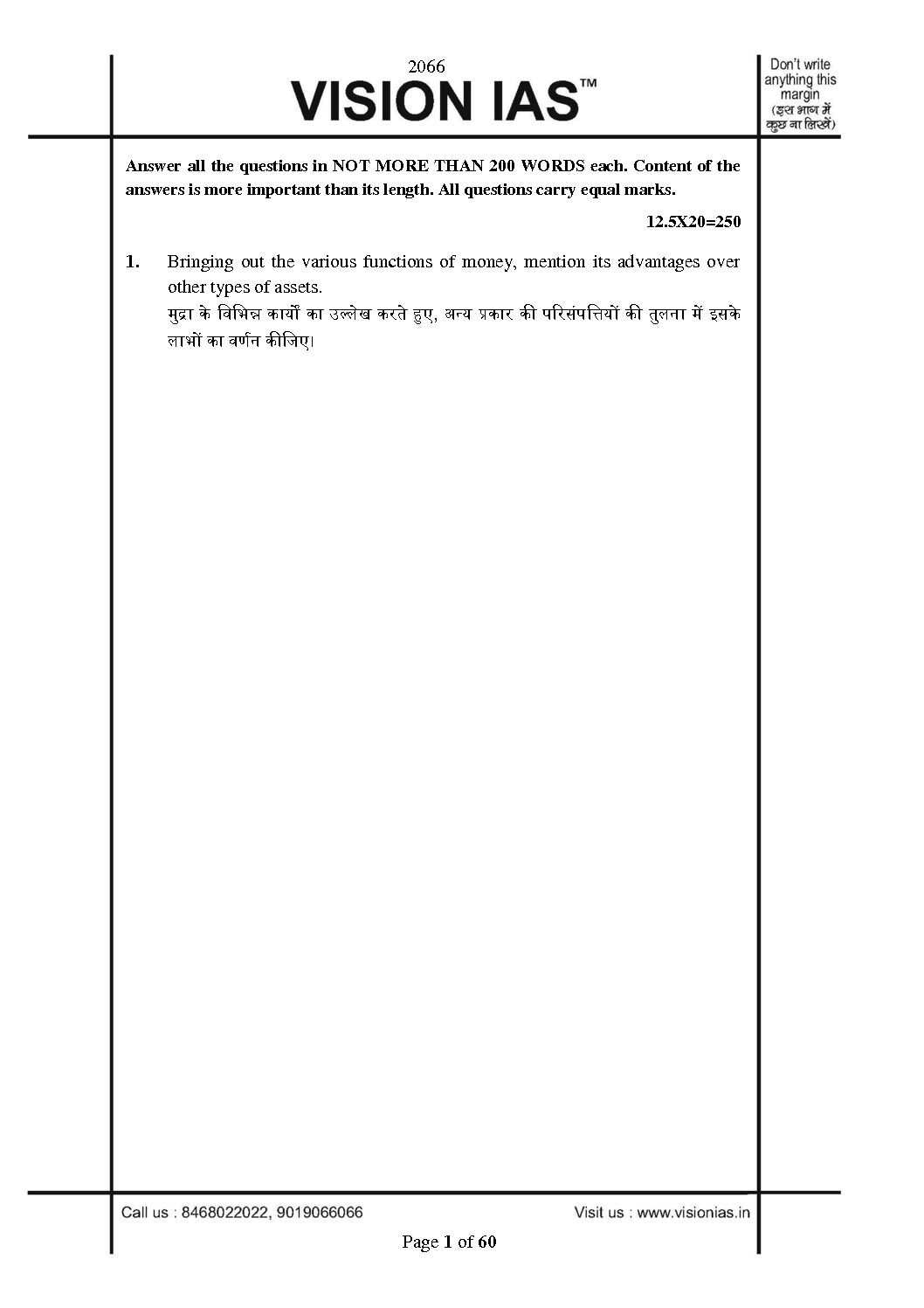 / VISION IAS 2023 TESTCODE-2066 (QUESTION CUM ANSWER BOOKLET) 2023 (BLACK & WHITE)