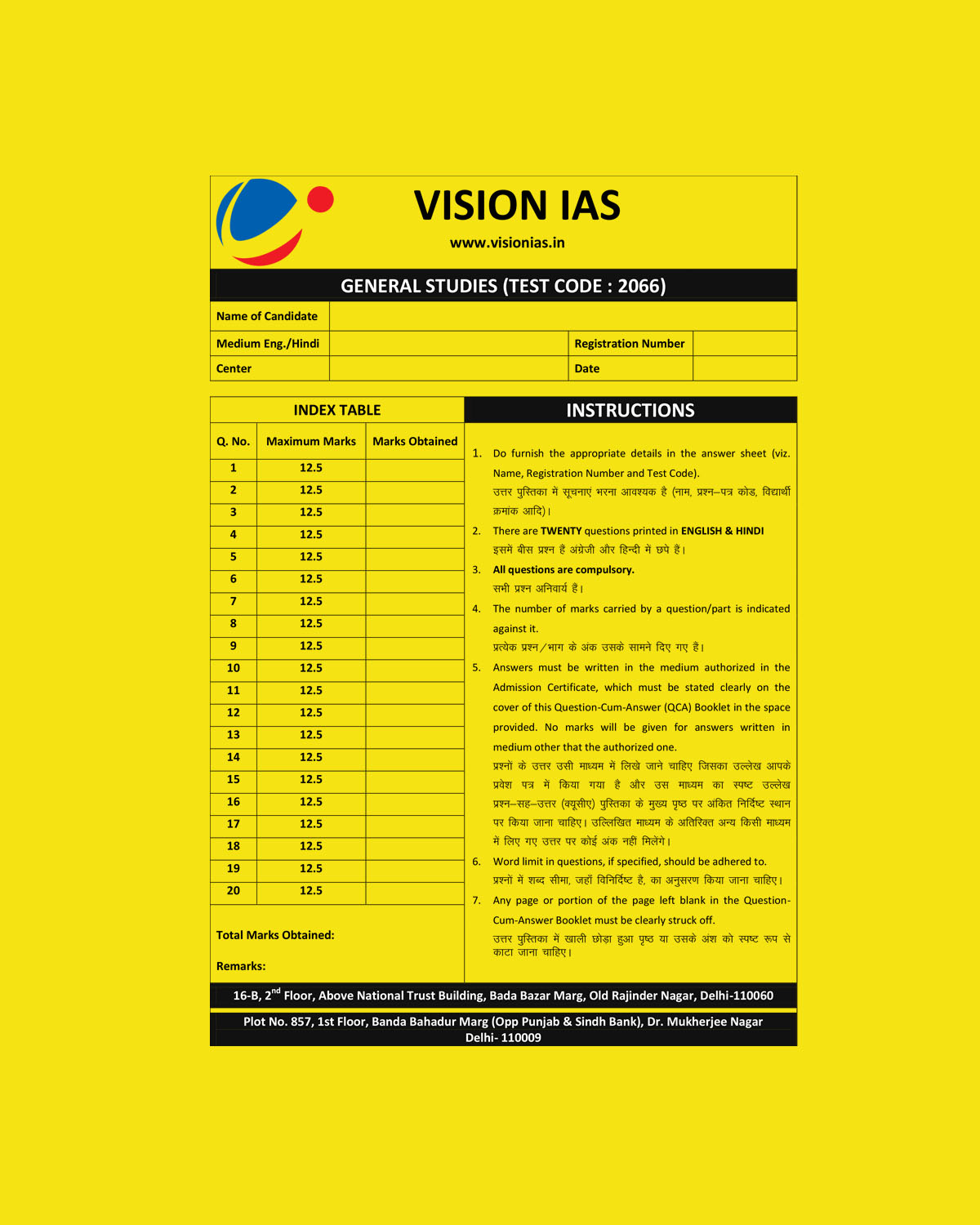 VISION IAS 2023 TESTCODE-2066 (QUESTION CUM ANSWER BOOKLET) 2023 (BLACK & WHITE)