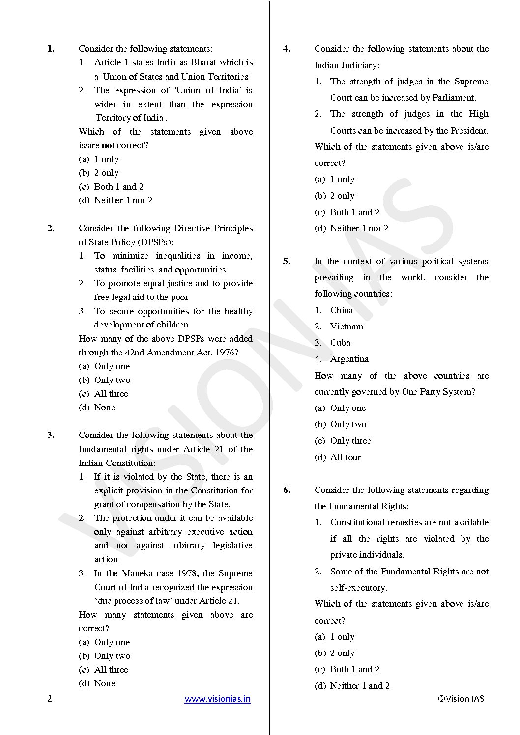 VISION IAS G.S. MAINS MOCK TEST-1491(2021)