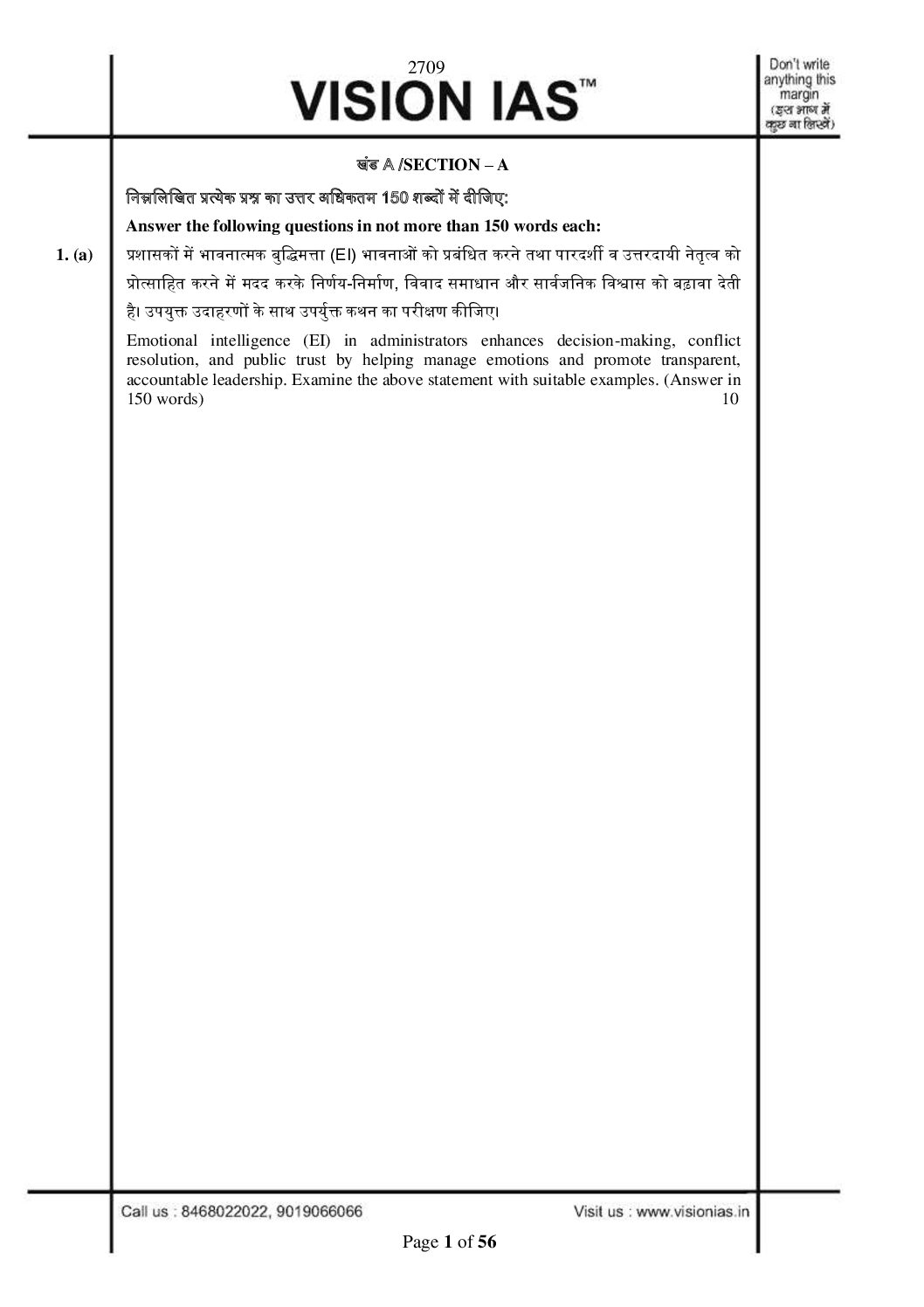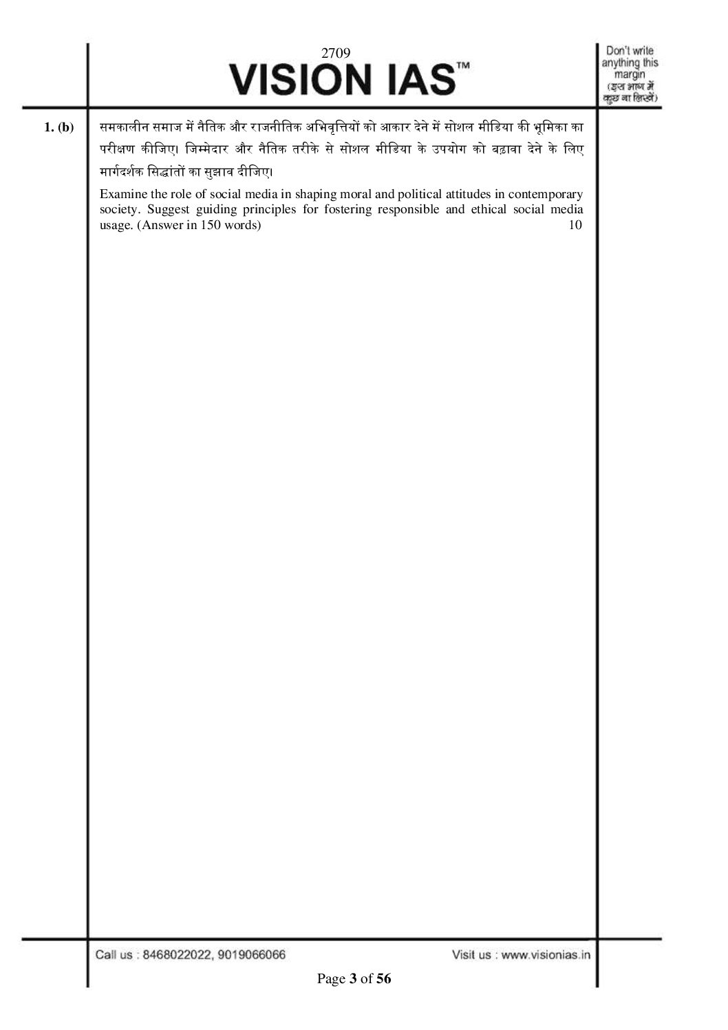 / VISION IAS 2025 MAINS QCA TEST-19 2709 QUESTIONS CUM ANSWERS BOOKLET 2025 FINAL (ENGLISH & HINDI) {BLACK AND WHITE}