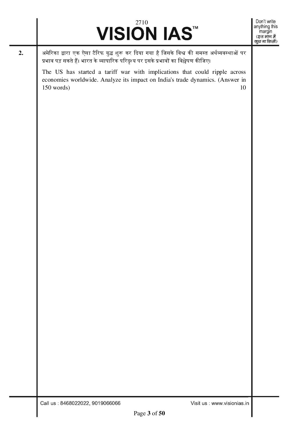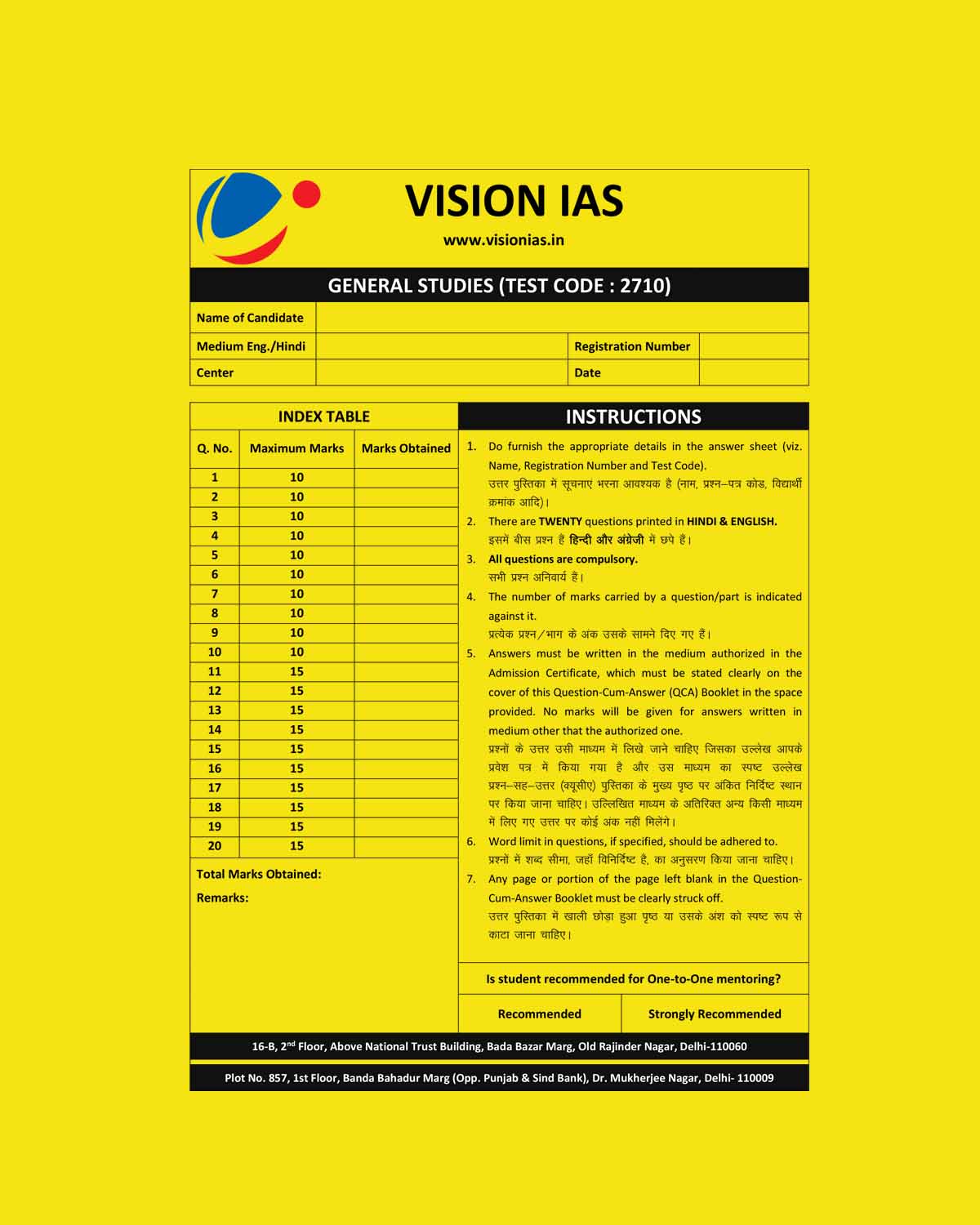 VISION IAS 2025 MAINS QCA TEST-20 2710 QUESTIONS CUM ANSWERS BOOKLET 2025 FINAL (ENGLISH & HINDI) {BLACK AND WHITE}