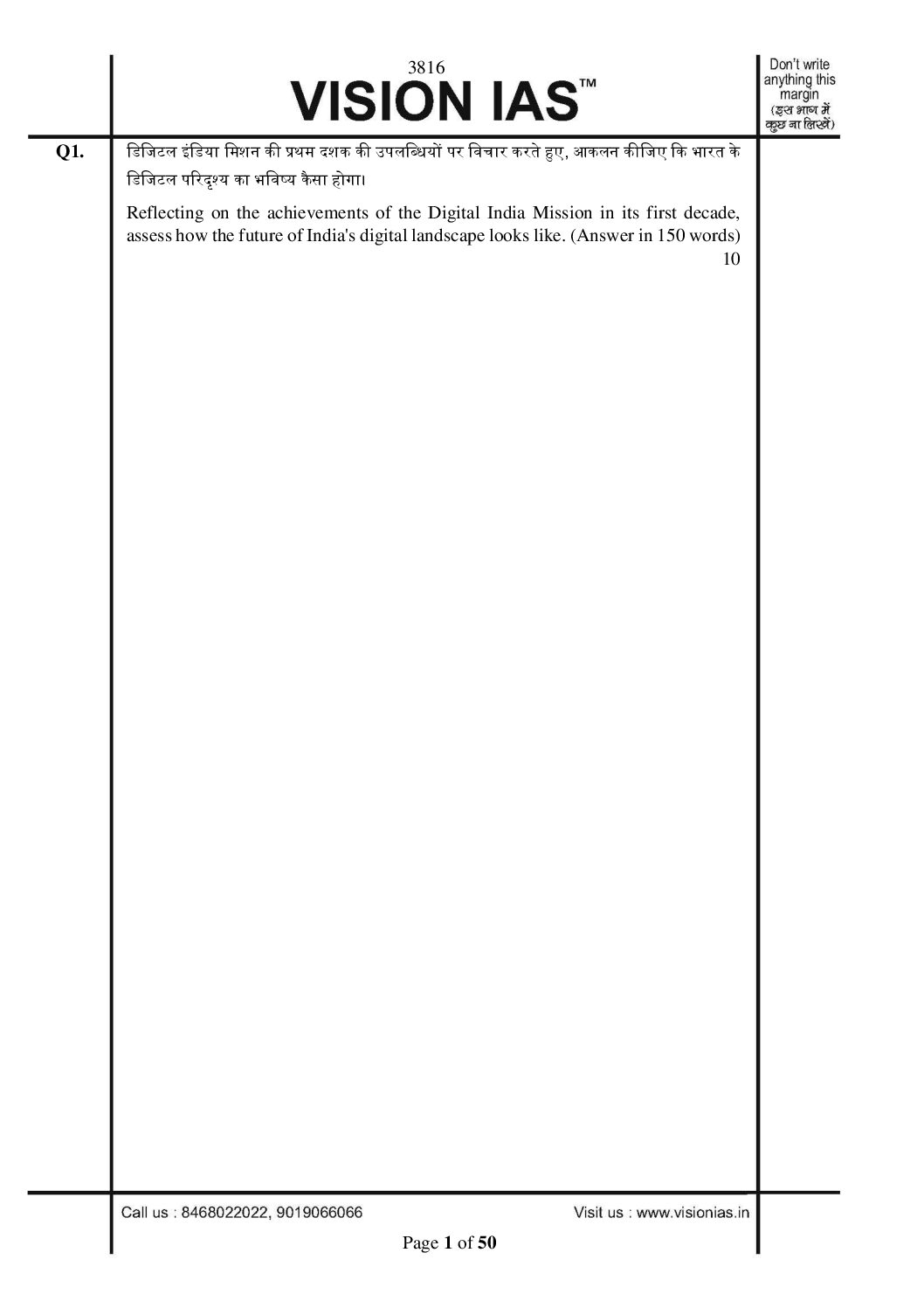 / VISION IAS 2026 QUESTION CUM ANSWER BOOKLETS TEST-10 (3816) ANSWERS BOOKLET 2026 FINAL (ENGLISH) {BLACK AND WHITE}