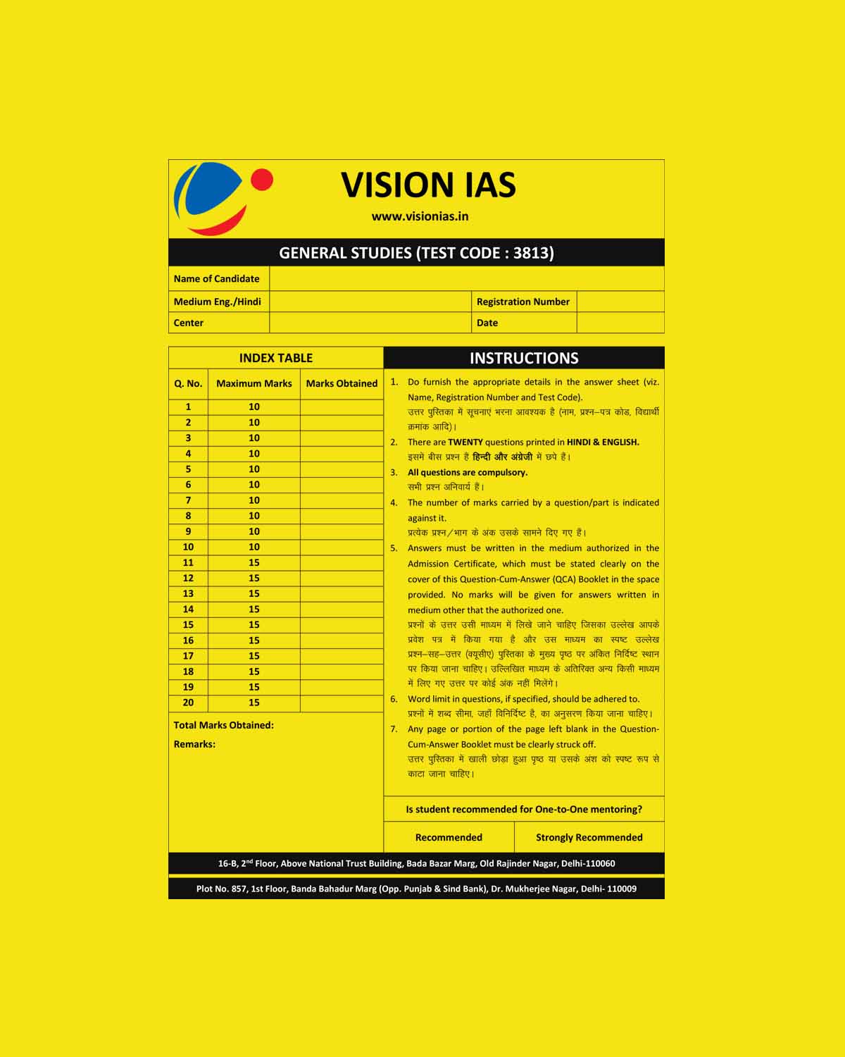 VISION IAS 2026 QUESTION CUM ANSWER BOOKLETS TEST-7 (3813) ANSWERS BOOKLET 2026 FINAL (ENGLISH & HINDI) {BLACK AND WHITE}BLACK AND WHITE}
