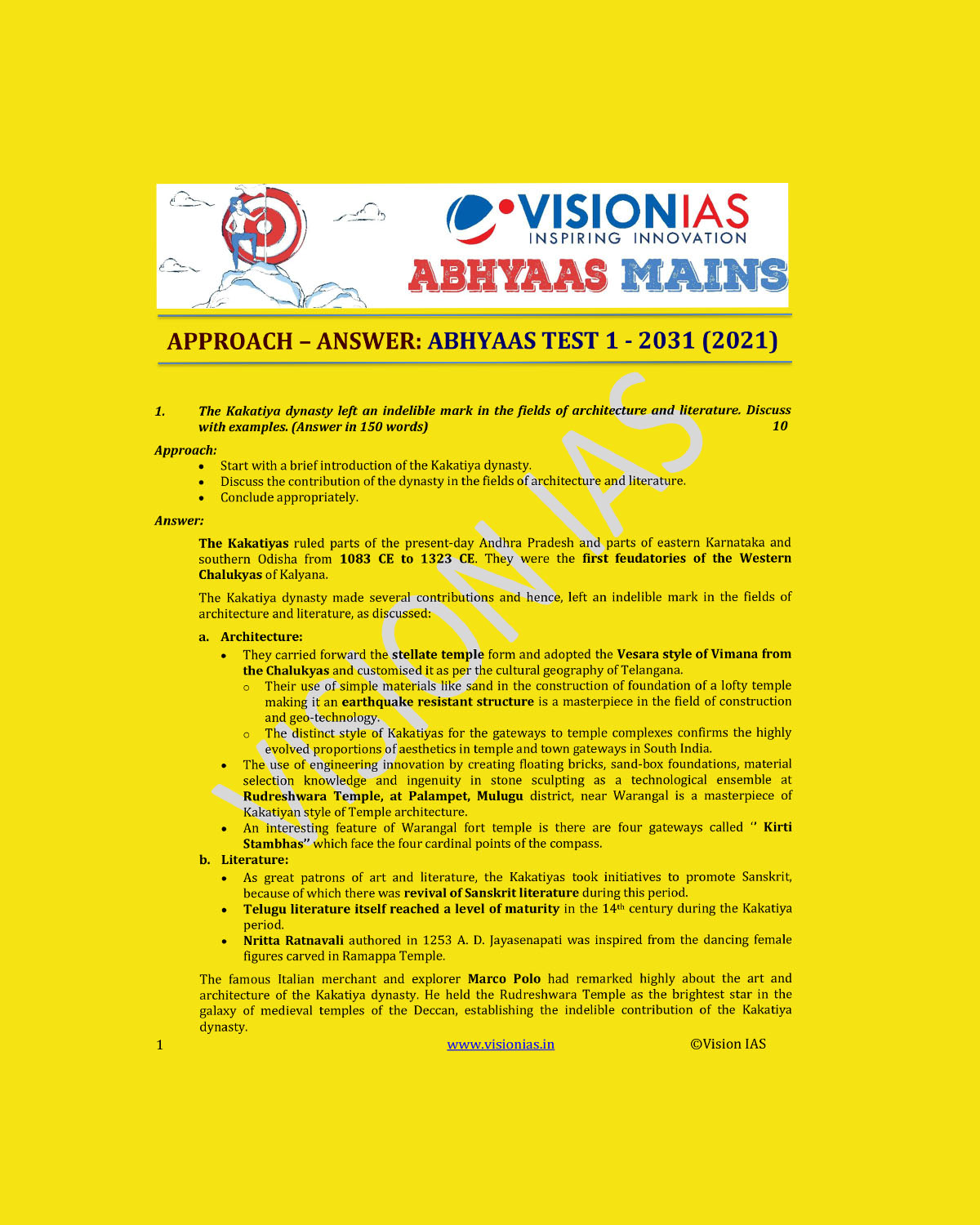 / VISION IAS ABHYAAS 2021 MODEL ANSWER ABHYAAS TEST-1(TEST CODE 2031)-2021 (MODEL PAPERS ) (BLACK & WHITE)