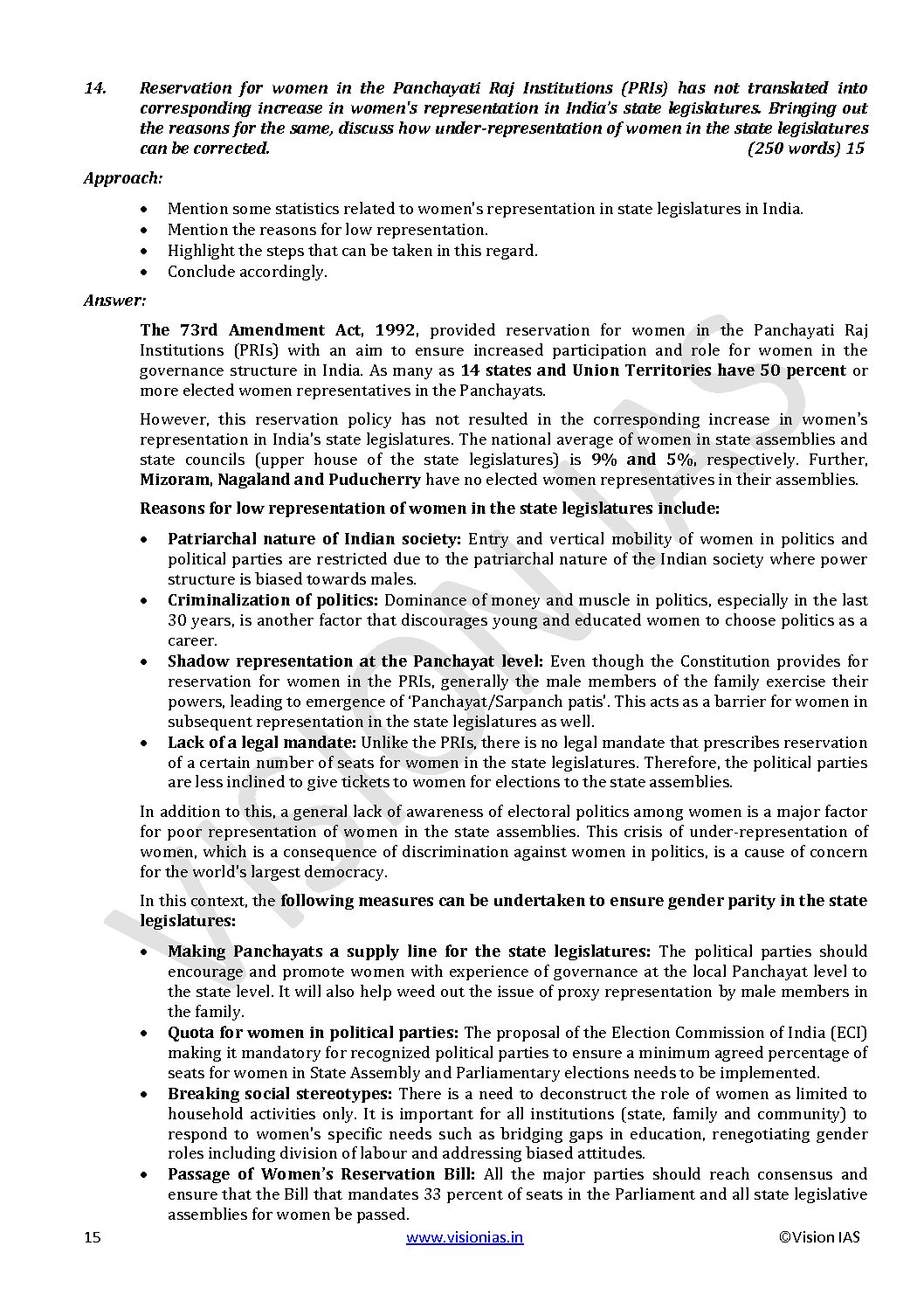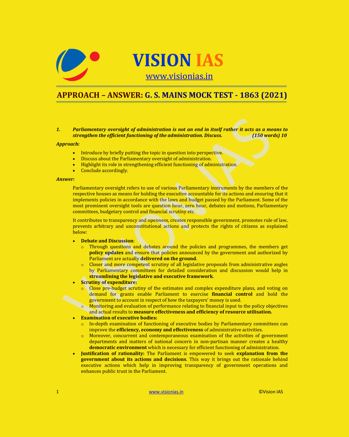 VISION IAS APPROACH-ANSWER G.S MAINS MOCK TEST-1863 (2021) (MODEL PAPERS )(BLACK & WHITE)