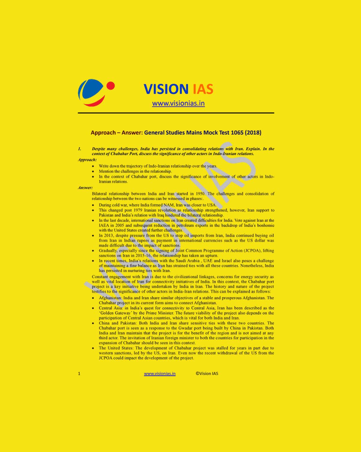 / VISION IAS GENERAL STUDIES MAINS MOCK TEST-1065 (2018)