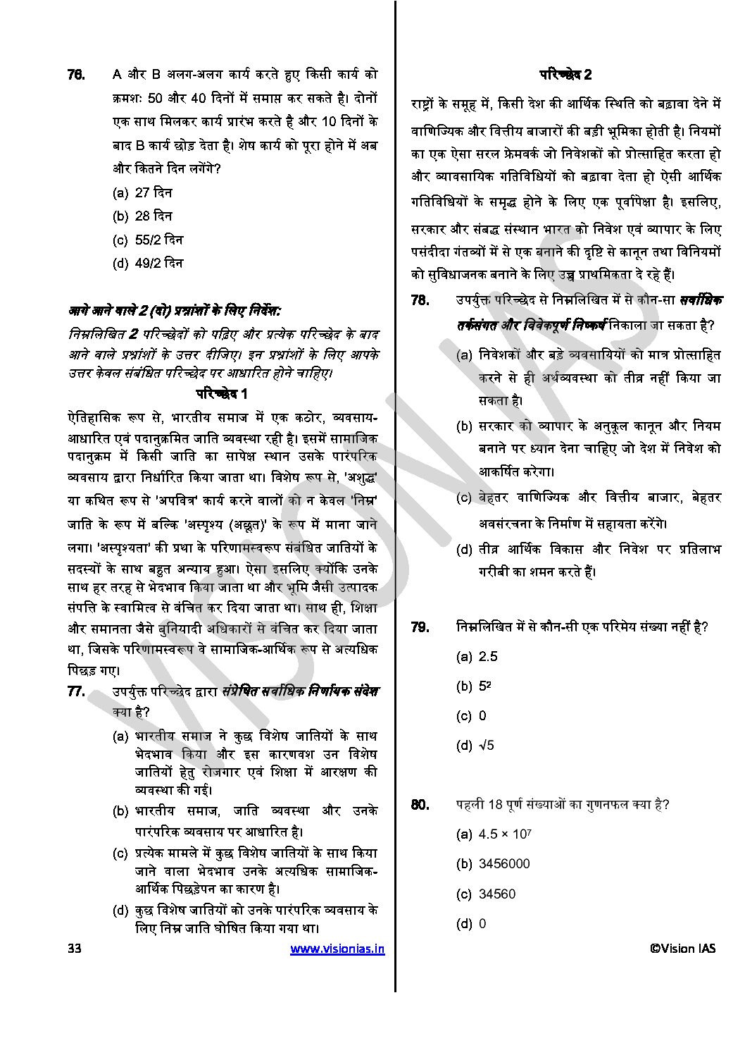 VISION IAS HINDI 2022 CSAT TEST-3- (TEST-CODE 3728) 2022 NUMBER SYSTEM, LCM-HCF TIME AND WORK SET THEORY DI- PIE CHART (HINDI MEDIUM) (BLACK & WHITE)