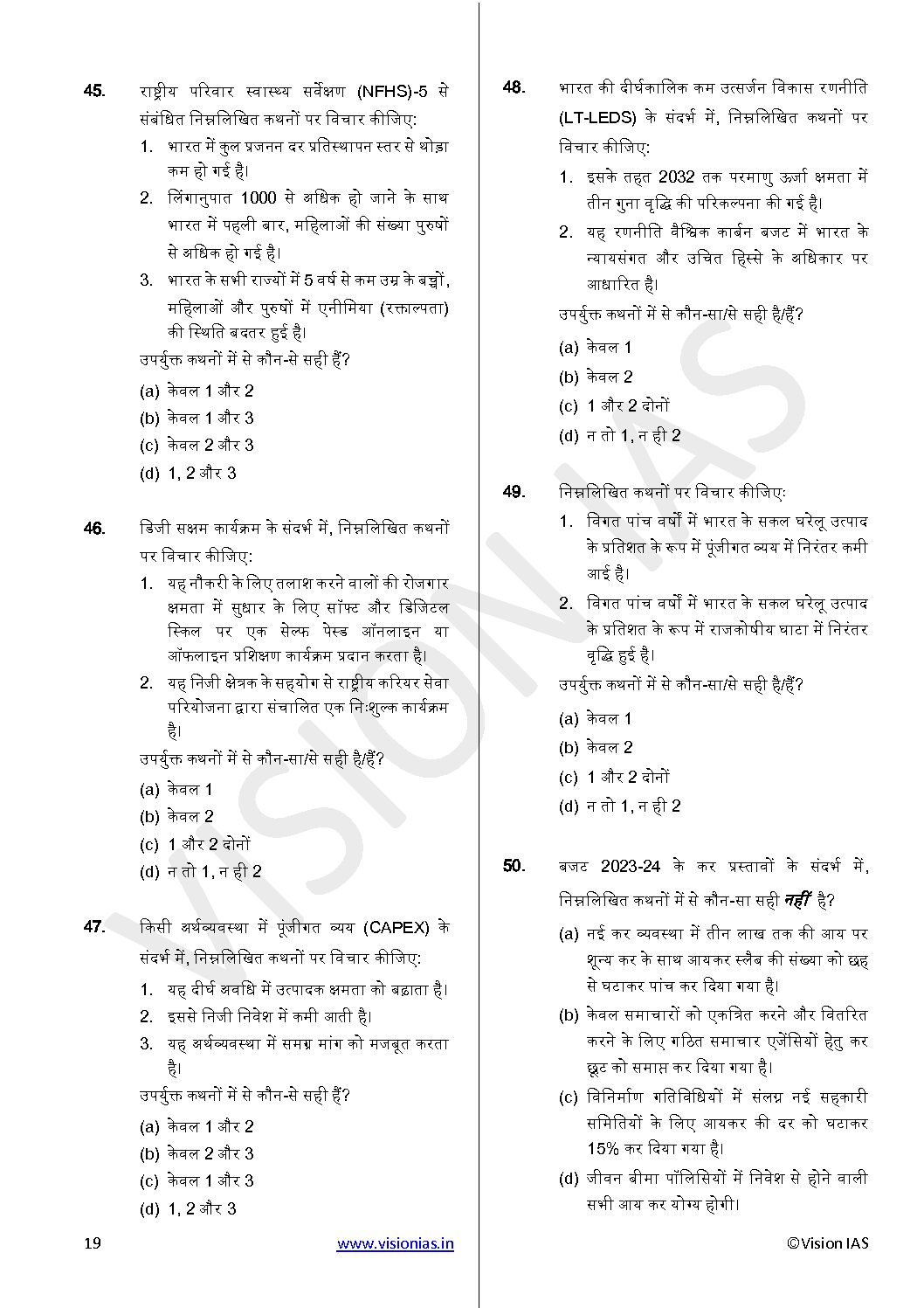 / VISION IAS HINDI 2023 PT TEST- 29 (3813) ECONOMIC SURVEY 2022-23 AND BUDGET 2023-24 HINDI MEDIUM (BLACK & WHITE)