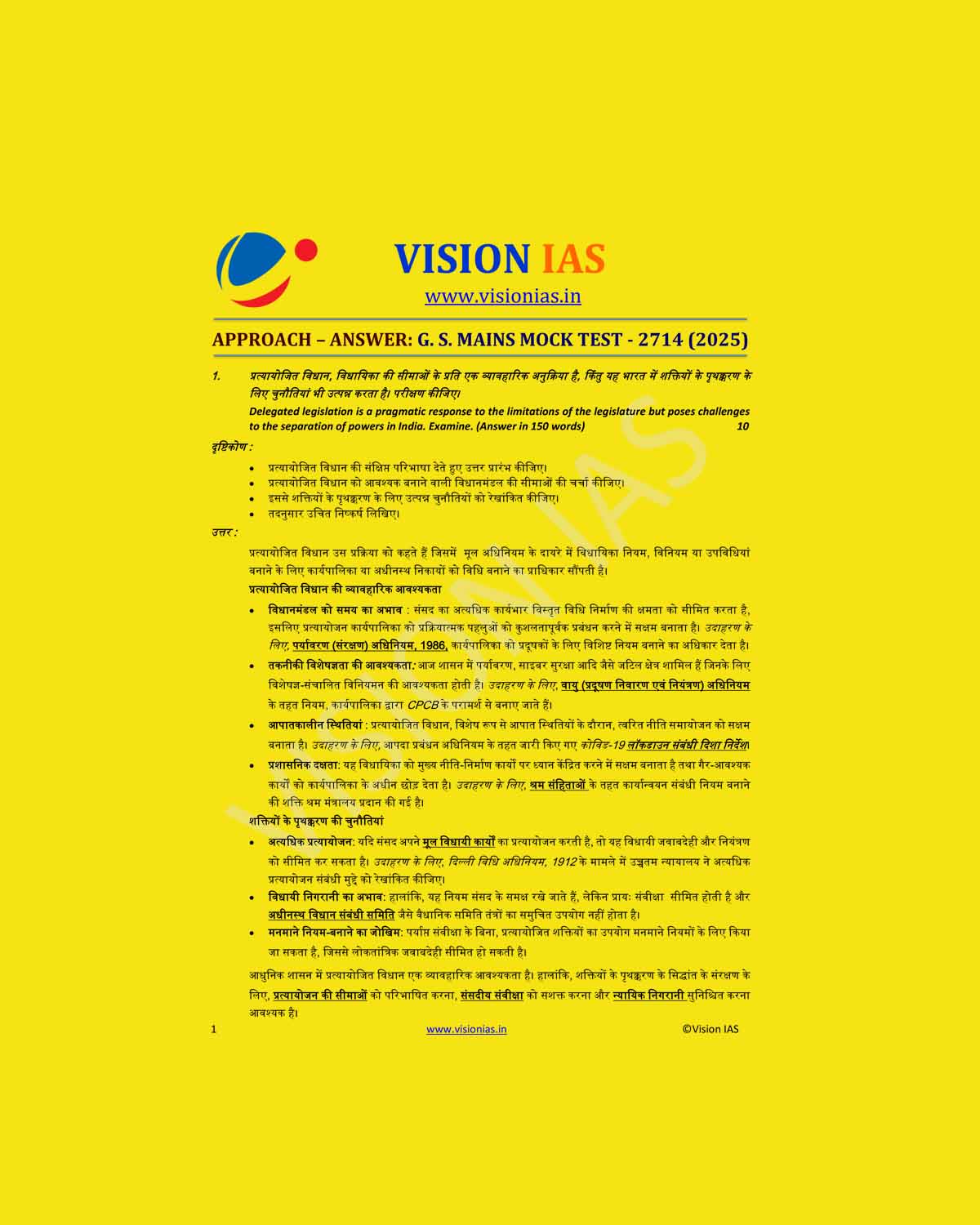 VISION IAS HINDI 2025 MODEL ANSWERS TEST-24 2714 MODEL ANSWERS 2025 FINAL HINDI {BLACK AND WHITE}