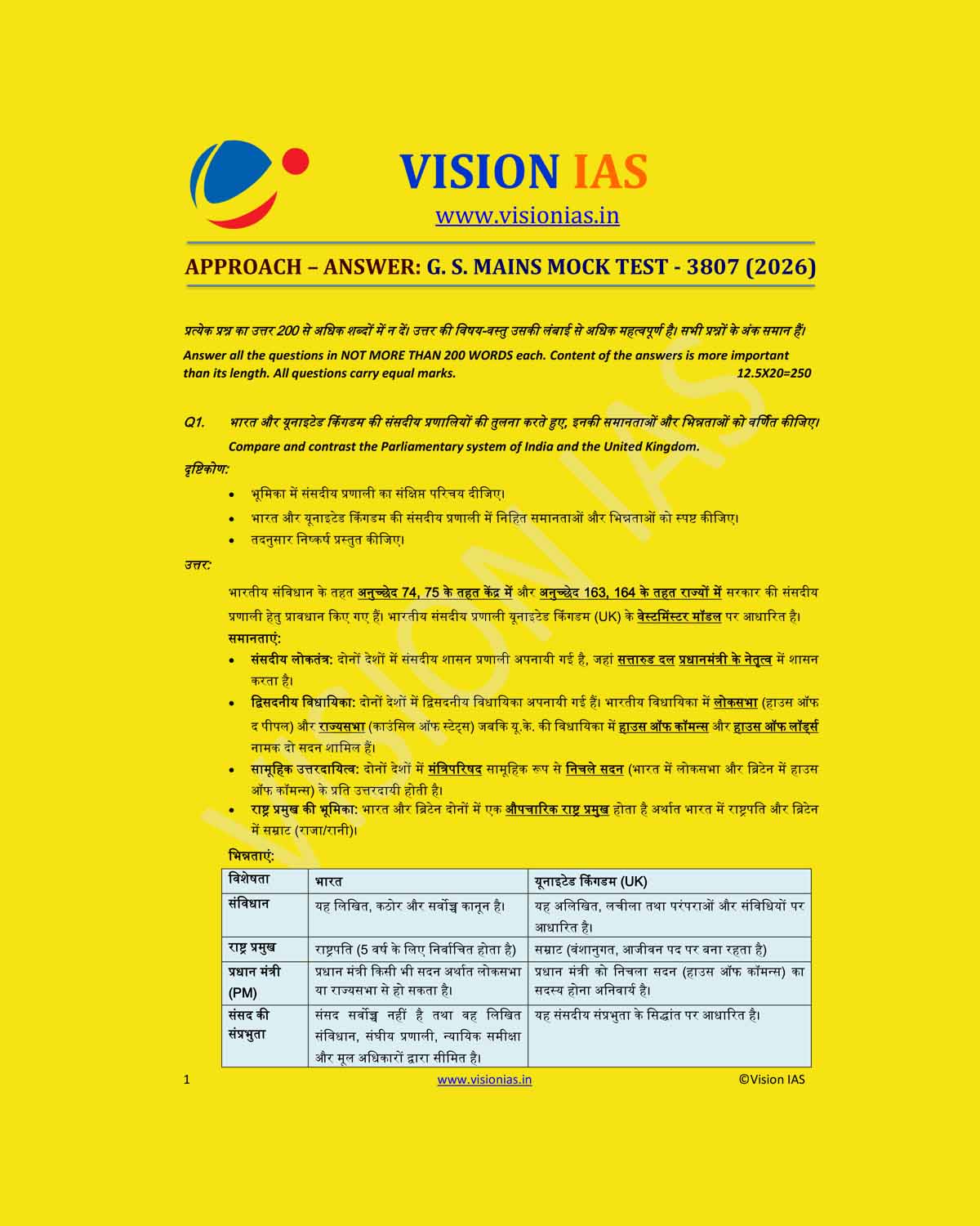 VISION IAS HINDI 2026 MODEL ANSWERS TEST-1 (3807) MODEL ANSWER 2026 FINAL (HINDI) {BLACK AND WHITE}