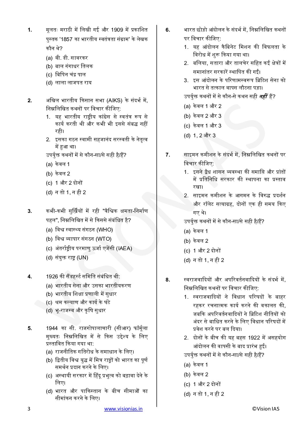 / VISION IAS HINDI 2026 PT TEST 14(6323) FINAL MODERN INDIA (HINDI) {BLACK AND WHITE}