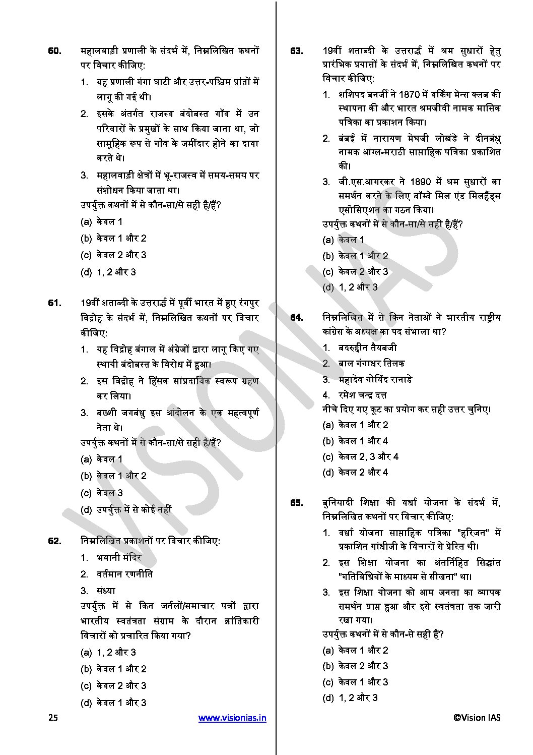 VISION IAS HINDI TEST – 13 (2975) MODERN INDIA – 2020 (BLACK & WHITE)