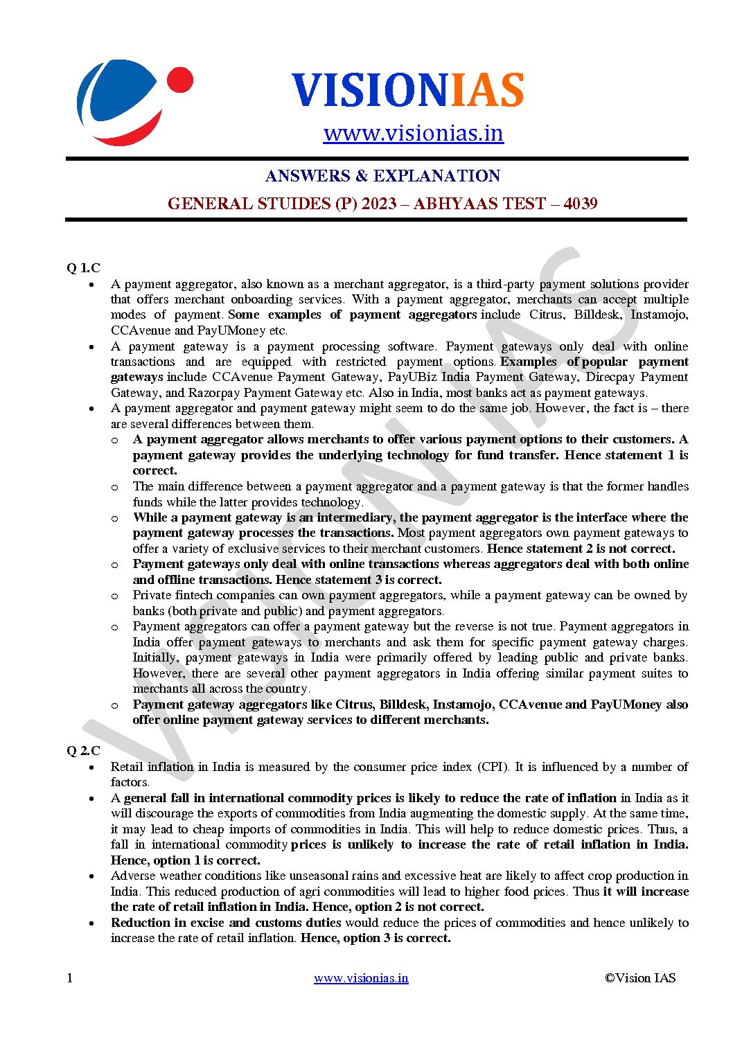 / VISION IAS PRELIMS PT ABHYAAS 2023 GS TEST -1 (4039) (BLACK & WHITE)