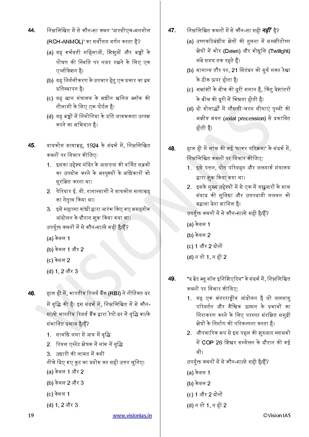 / VISION IAS PRELIMS TEST 2023 TEST- 28 (3812) FULL LENGTH TEST HINDI MEDIUM (BLACK& WHITE)