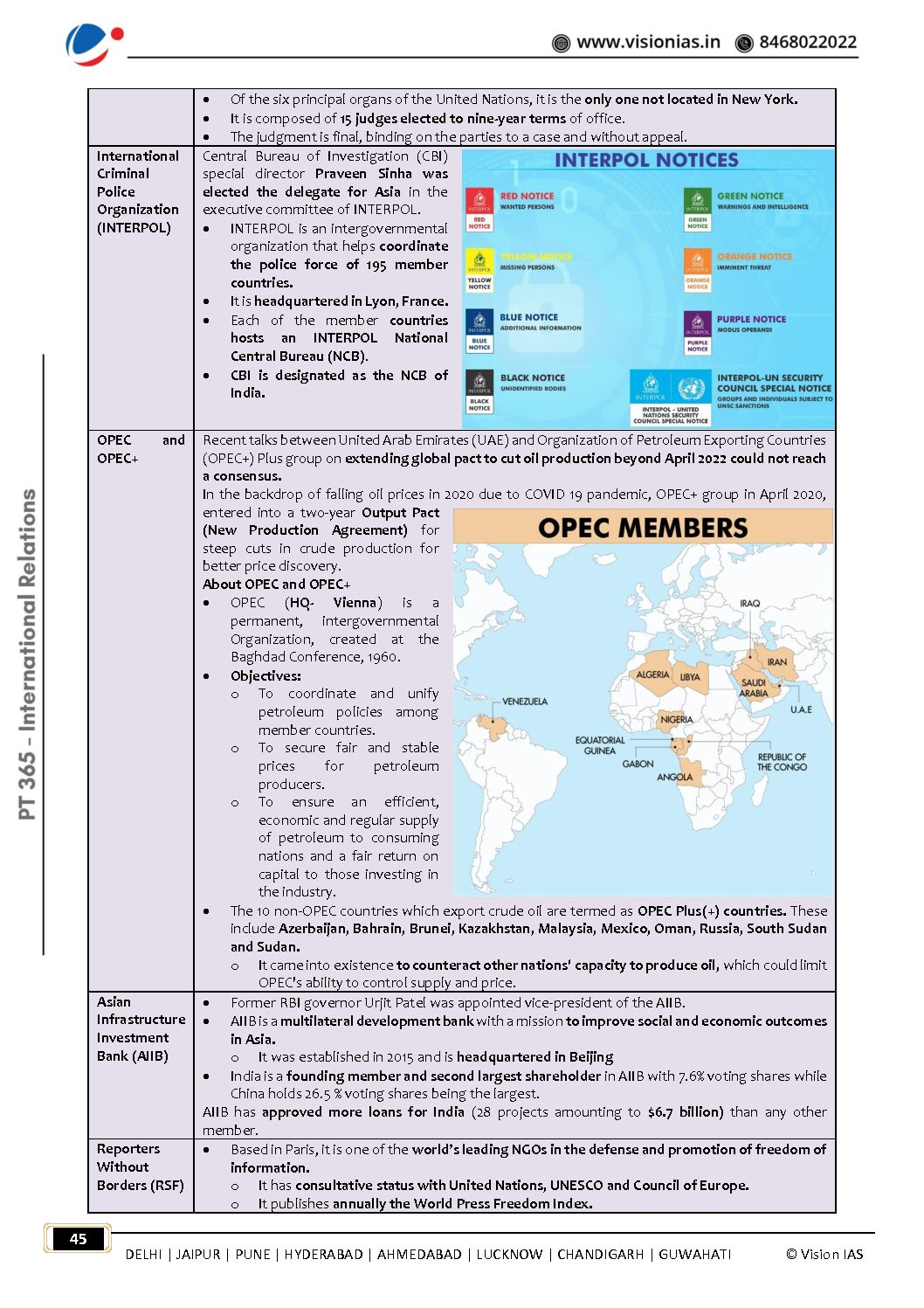 VISION IAS PT 365 CLASSROOM STUDY MATERIAL- INTERNATIONAL RELATIONS- 2022 (MAY 2021 TO JANUARY 2022) (BLACK & WHITE)