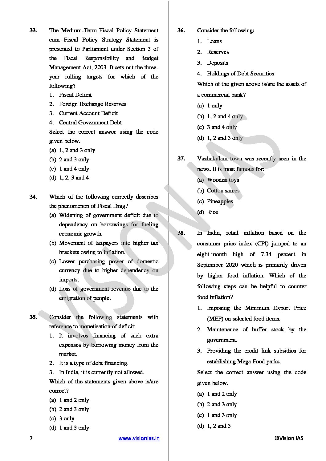 / VISION IAS PT TEST-21 (3198) INDIA ECONOMY 2021