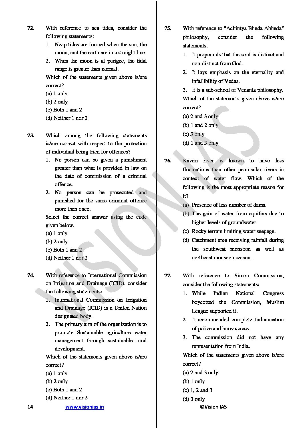 / VISION IAS PT TEST- 26 (2676) FULL LENGTH TEST COMPLETE SYLLABUS – 2019 (BLACK & WHITE)