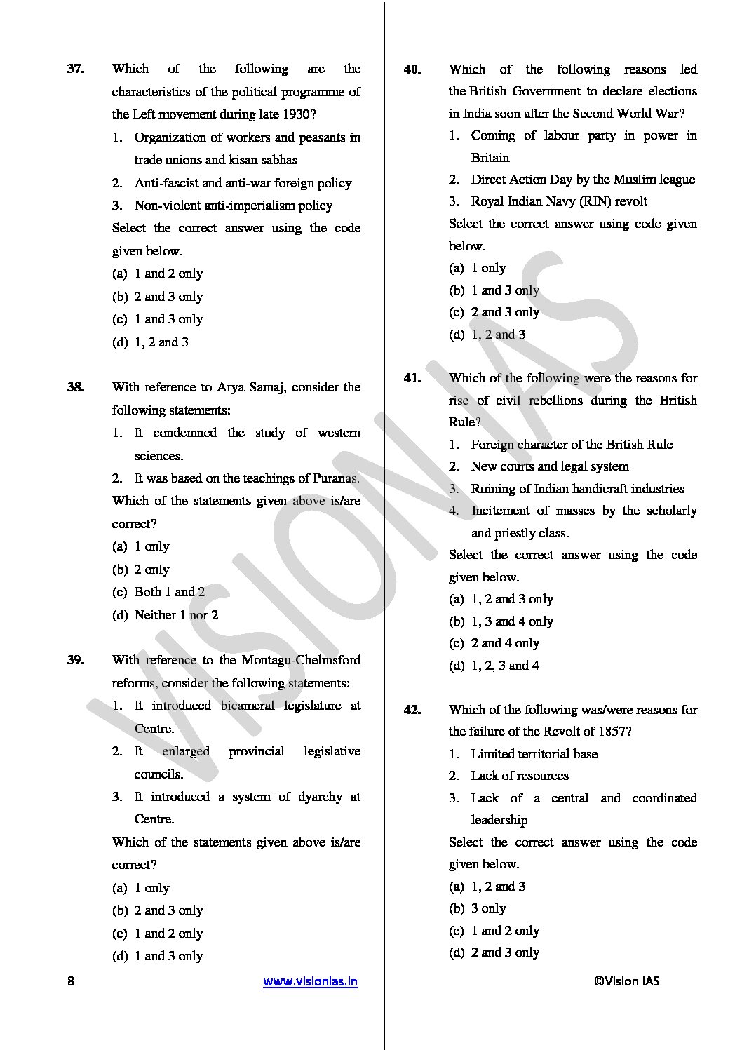 VISION IAS PT TEST-6 (2433) MODERN INDIA 2018 (BLACK & WHITE)
