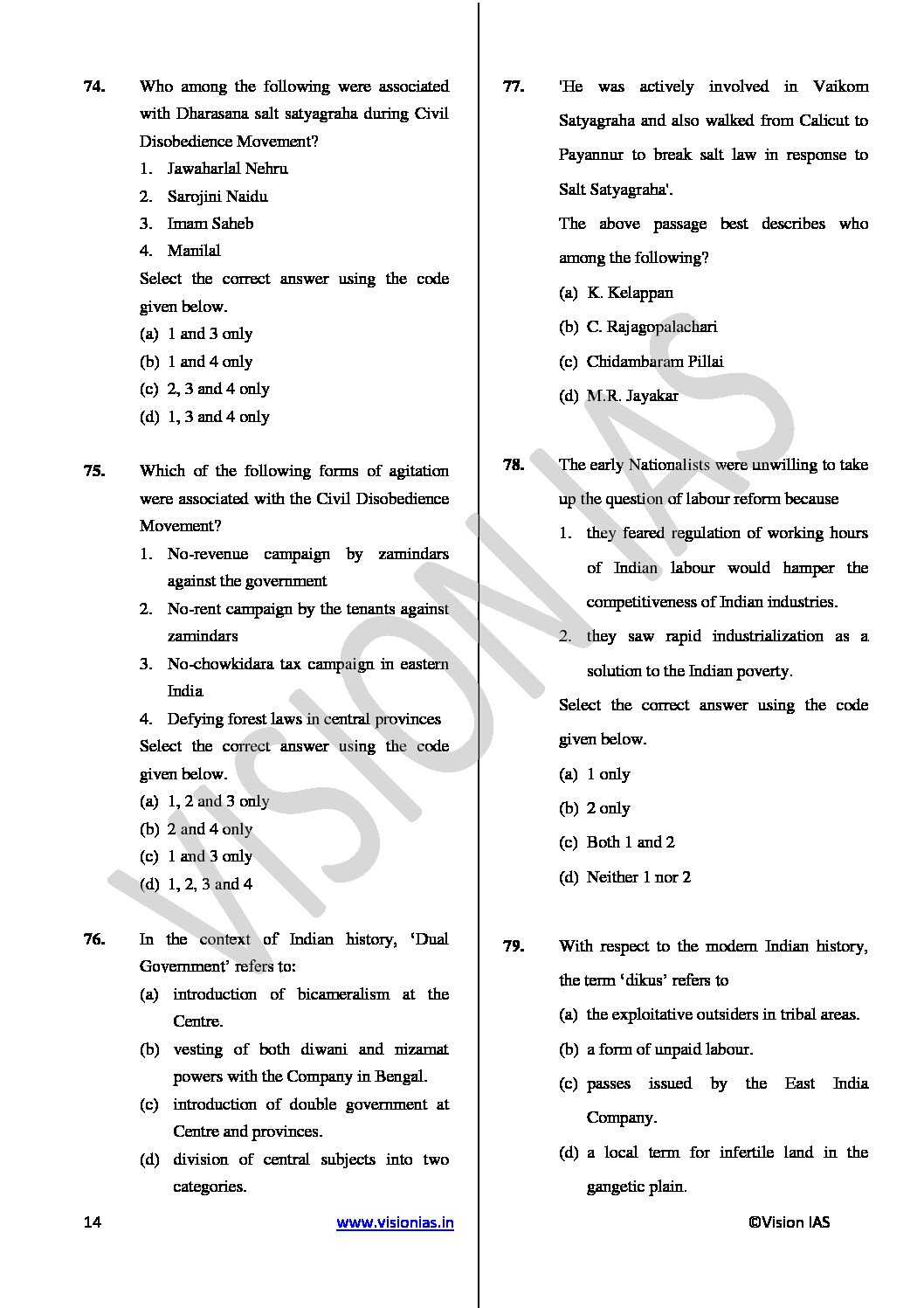 / VISION IAS PT TEST-6 (2433) MODERN INDIA 2018 (BLACK & WHITE)