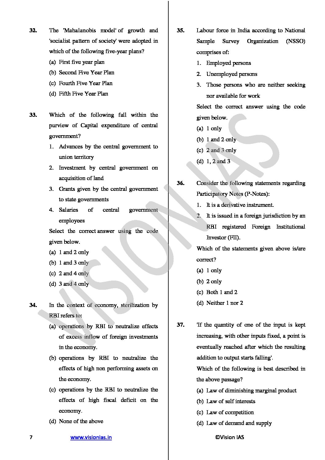 / VISION IAS PT TEST- 7 (2657) INDIA ECONOMY – 2019 (BLACK & WHITE)
