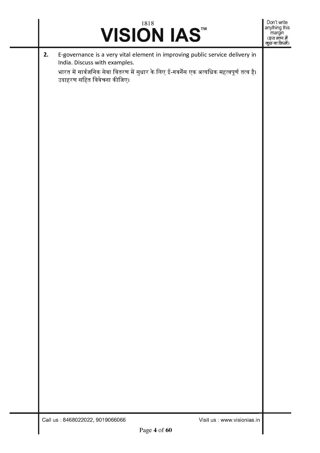 / VISION IAS QCA GENERAL STUDIES TEST CODE-1818 (QUESTION CUM –ANSWER BOOKLET) 2022 (BLACK & WHITE)