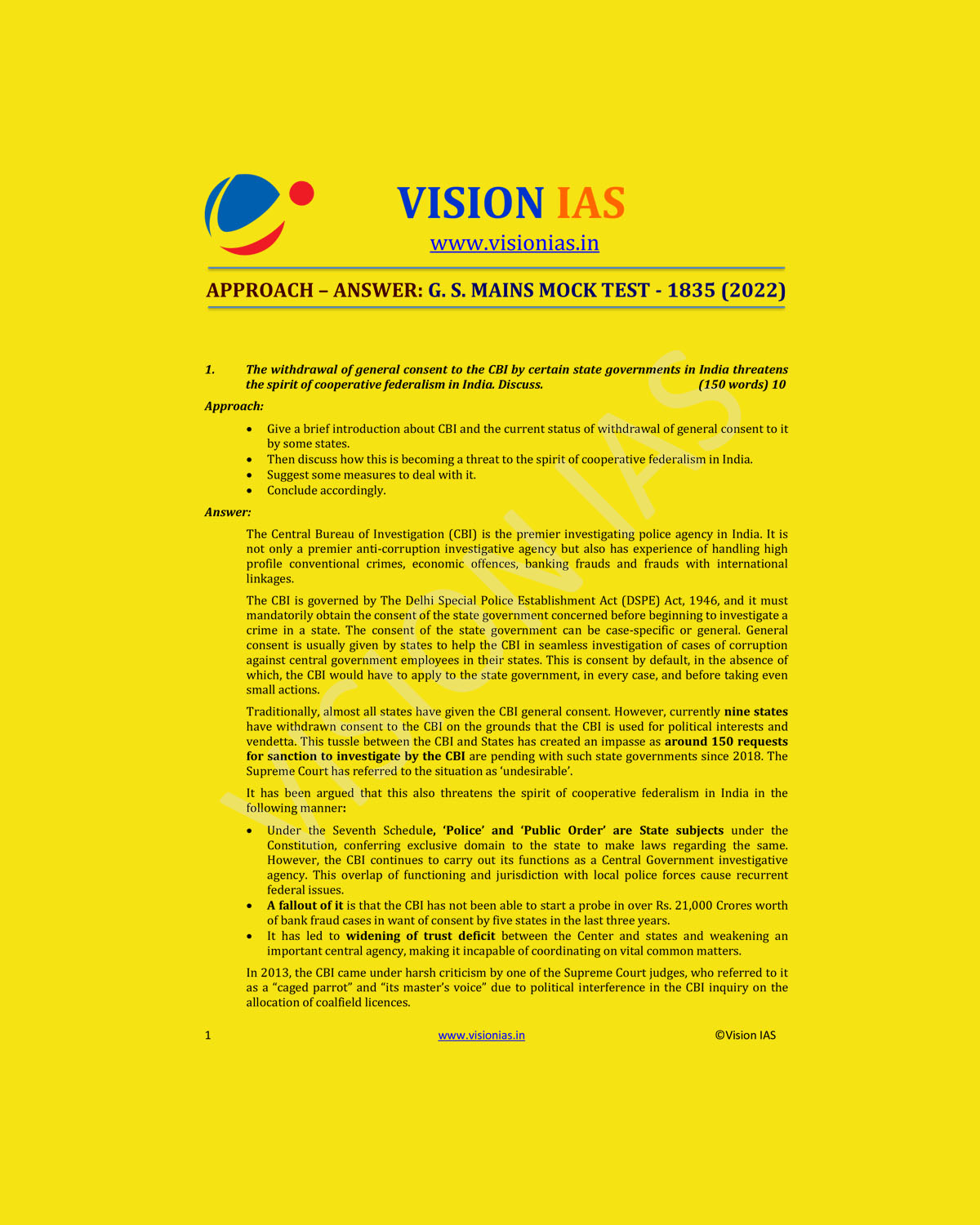 VISION IAS G.S. MAINS MOCK TEST-1493(2021)