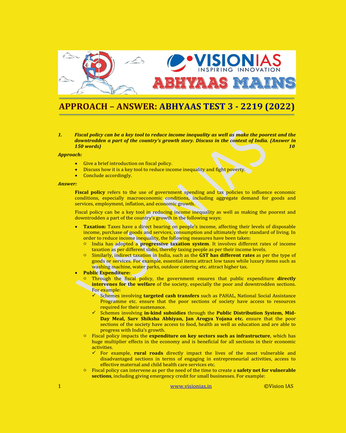 / VISIONIAS ABHYAAS 2022 MODEL ANSWERS TEST-3 (TEST CODE 2219) 2022 MODEL ANSWERS (BLANK & WHITE)
