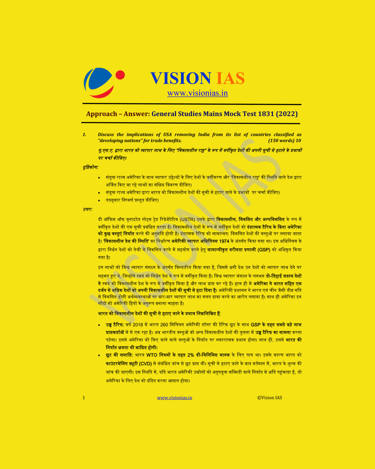 VISION IAS G.S. MAINS MOCK TEST-1499(2021)
