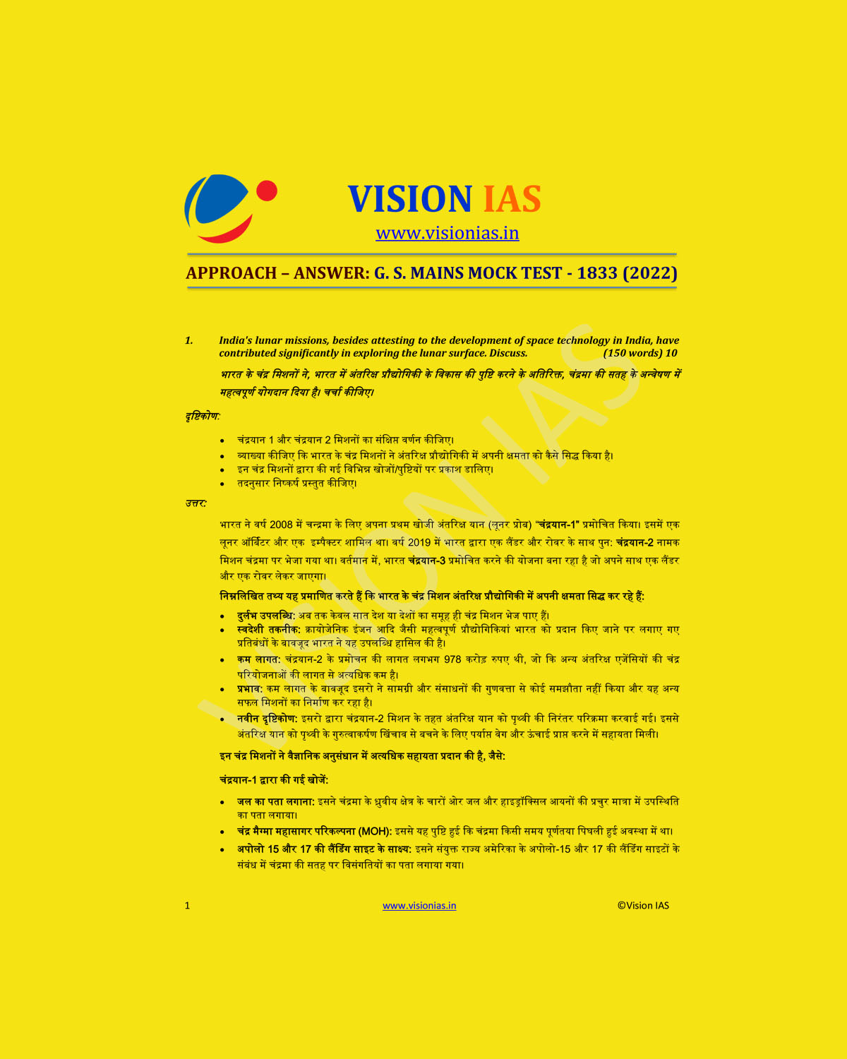 / VISIONIAS HINDI 2022 MODEL ANSWERS TEST CODE – 1833 (2022) HINDI MEDIUM (BLACK & WHITE)