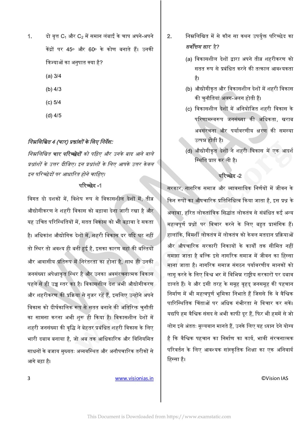 VISION IAS G.S. MAINS MOCK TEST-1491(2021)