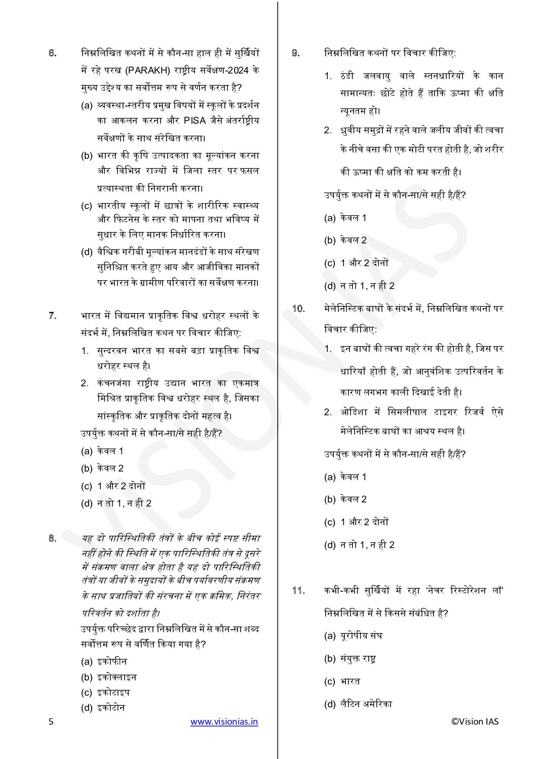 VISIONIAS HINDI 2025 PT TEST 18 (4718) ECOLOGY & ENVIRONMENT FINAL (HINDI) {BLACK AND WHITE}